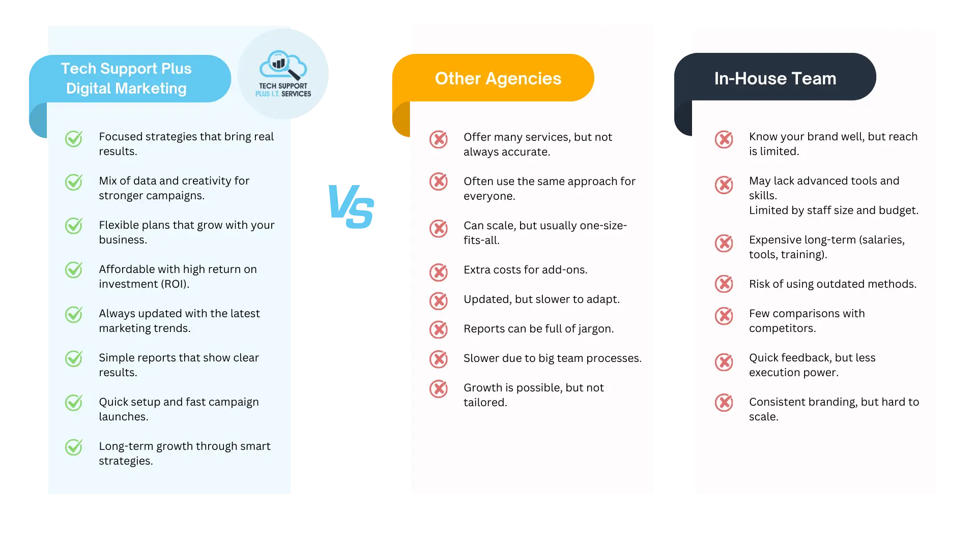 As one of the Philippines’ premier digital marketing solutions agency, Tech Support Plus IT and Digital Services transforms insights into measurable results, across SEO, paid media, content, analytics, web development services, and cloud solutions. We're strategically data-driven, client-focused, and performance-oriented.
